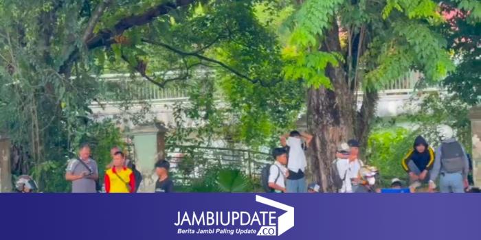 JAMBIUPDATE.CO, JAMBI - Remaja berpakaian sekolah tampak 'nimbrung' di sekitaran lokasi demo DPRD Provinsi Jambi, Senin (1/9/2025). Massa pelajar ini disebut akan ikut-ikutan berunjuk rasa dan kabur dari jam pelajaran.