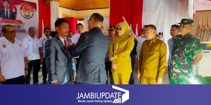 JAMBIUPDATE.CO, MUARASABAK - Ketua Umum KONI Provinsi Jambi, AKBP Mat Sanusi, S.Pd., M.Si secara resmi mengukuhkan Ketua Umum KONI Kabupaten Tanjabtim beserta pengurus masa bakti 2025-2029, Senin (1/9) siang.