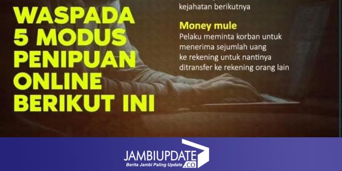 Paur Penum Bid Humas Polda Jambi, Ipda Maulana, menjelaskan ada setidaknya lima modus utama yang kerap digunakan pelaku kejahatan siber. Yakni, modus phishing, modus keledai uang, modus farmasi, modus sniffing atau mengendus dan social engineering.