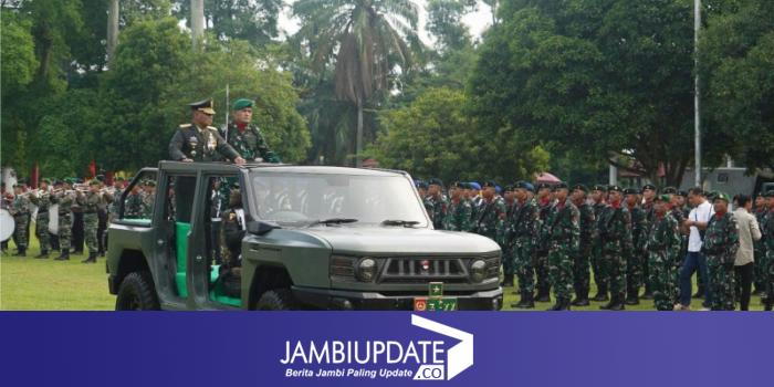 JAMBIUPDATE.CO, JAMBI - Inspektur Daerah Militer (Irdam) XX/Tuanku Imam Bonjol, Brigjen TNI Heri Susanto, memimpin pelaksanaan Upacara Peringatan Hari Ulang Tahun (HUT) ke - 80 Tentara Nasional Indonesia (TNI) yang digelar di Lapangan Kantor Gubernur Jambi, Minggu (5/10/2025).