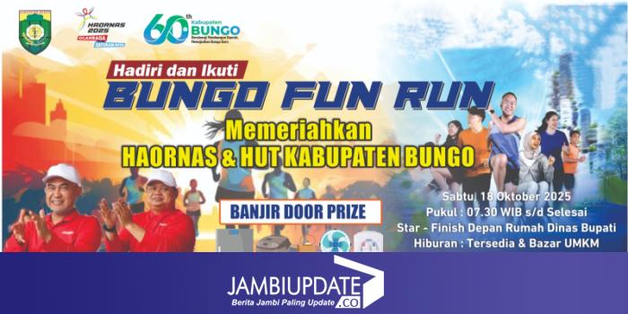 Pemerintah Kabupaten Bungo mengajak seluruh warga untuk ikut serta dalam Bungo Fun Run dan menjadikan momentum HUT ini sebagai ajang kebersamaan, semangat sehat, serta mempromosikan potensi lokal.(aes)