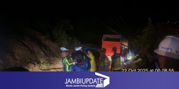 JAMBIUPDATE.CO, KERINCI — Bencana longsor terjadi jalan nasional Kerinci-Bangko, tepatnya di Muara Hemat Selasa malam (21/10/2025). Jalan Kerinci - Bangko lumpuh total sejak pukul 21.30 WIB. Puluhan mobil terjebak macet beberapa jam. Hingga pukul 00.30 WIB Rabu (22/10/2025) jalan baru bisa dilalui setelah alat berat dikerahkan.