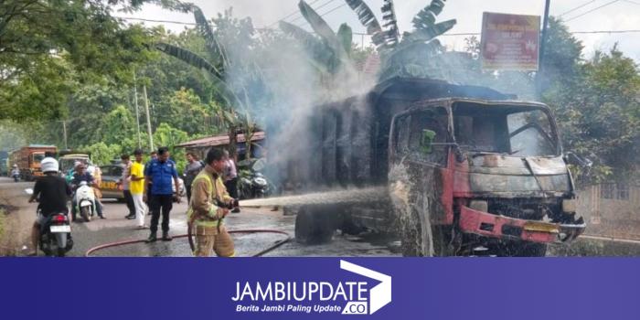 JAMBIUPDATE.CO, MUARO JAMBI - Sebuah truk terbakar di RT 16, Desa Muaro Kumpeh, Kecamatan Kumpeh Ulu, Kabupaten Muaro Jambi, Senin (3/11). Kebakaran diduga disebabkan oleh korsleting pada sistem perkabelan kendaraan.