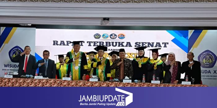 JAMBIUPDATE.CO, JAMBI - Sekolah Tinggi Ilmu Ekonomi (STIE) Jambi mewisuda sebanyak 52 orang mahasiswa dan mahasiswi jurusan manajemen dan akuntansi. Kegiatan atau prosesi wisuda angkatan XXII STIE Jambi ini dilaksanakan di ruang Batanghari, Hotel Abadi Grand, Kota Jambi, Sabtu (22//11/2025).