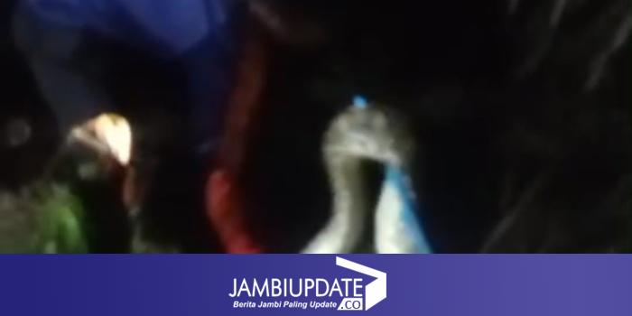 JAMBIUPDATE.CO, MUARO JAMBI - Seekor ular python sepanjang sekitar empat meter dievakuasi petugas Pemadam Kebakaran dan Penyelamatan (Damkartan) Muaro Jambi dari sebuah lokasi usaha dekorasi di Desa Marga Mulya, Kecamatan Sungai Bahar, Minggu (14/12) malam.