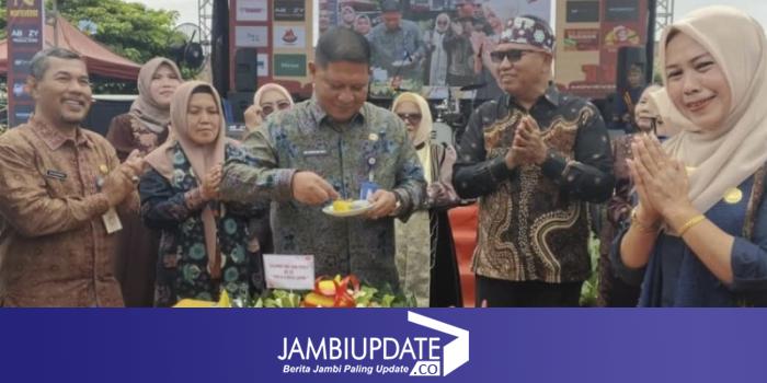 Plt Kadisdik Provinsi Jambi M Umar ikut memotong kue ulang tahun pada saat itu.