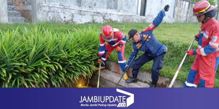 Kepala Dinas Pemadam Kebakaran dan Penyelamatan Kota Jambi, Mustari Affandi, mengatakan laporan keberadaan buaya diterima petugas pada pukul 18.01 WIB melalui layanan WhatsApp Damkar.