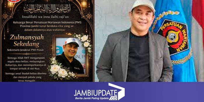 JAMBIUPDATE CO, JAKARTA - Inalillahi wa inna ilaihi raji'un.Telah meninggal dunia Sekretaris Jenderal (Sekjen) Persatuan Wartawan Indonesia (PWI) Pusat, periode 2025-2030, Zulmansyah Sekedang, dini hari Sabtu, 18 April 2026 pukul 00.05 di Rumah Sakit Budi Kemuliaan akibat serangan jantung.