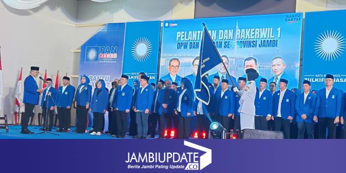 JAMBIUPDATE.CO, JAMBI- Pengurus Dewan Pimpinan Wilayah (DPW) Partai Amanat Nasional (PAN) Provinsi Jambi periode 2024-2029 resmi dilantik di Abadi Convention Center (ACC), Kamis (30/4/2026). Pelantikan yang digelar bersama pengurus DPD PAN 11 Kabupaten/kota dihadiri langsung oleh Ketua Umum Zulkifli Hasan (Zulhas).